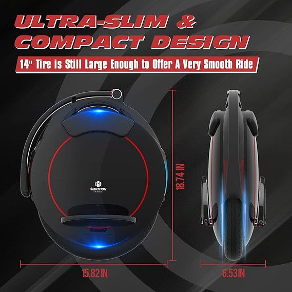 The V5F is a reliable entry-level electric unicycle, perfect for beginner learning to ride. With its ultra-compact 14”wheel, it's highly portable for crowded commutes. The V5F includes sought-after features like a fold-up trolley handle and an anti-spin button for easy lifting without powering down. The bright lights on the front and back ensure visibility, especially at night. Like other INMOTION models, riders can use the INMOTION App for real-time stats and diagnostics.